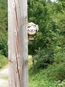 Quest’estate, mentre ero in vacanza a Prali e passeggiavo con il mio cane, mi sono imbattuta in uno gnometto su di una pietra accompagnato da graziose lumachine.
